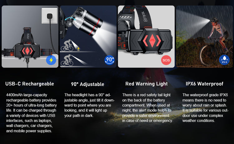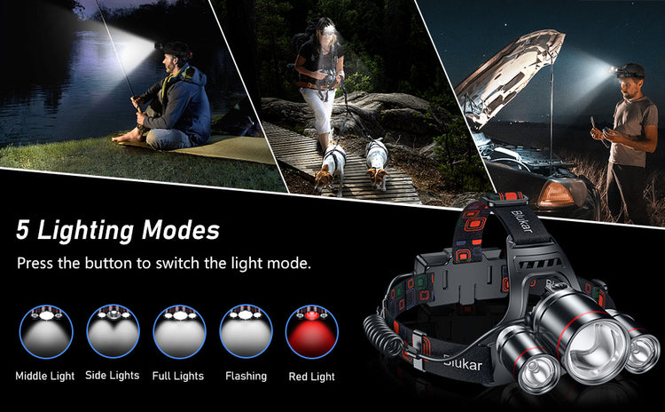 For the money, this L.E.D. headlamp is great. The main light can illuminate a wide area as a floodlight or with a couple of turns of the lens, squeezes out a powerful spotlight. How powerful? As I was walking my Staffordshire late the night I got this headlamp, the county police helicopter was at 250ft. and in looking up, the spotlight illuminated the back of the copter as it turned away from us! The two smaller tube lights work good but all three lights worked great! They can ditch the flashing mode in my opinion. The Red light mode is great except that the diode is at a slight angle you'll need to compensate for. 9 out of 10 rating for a budget priced headlamp!