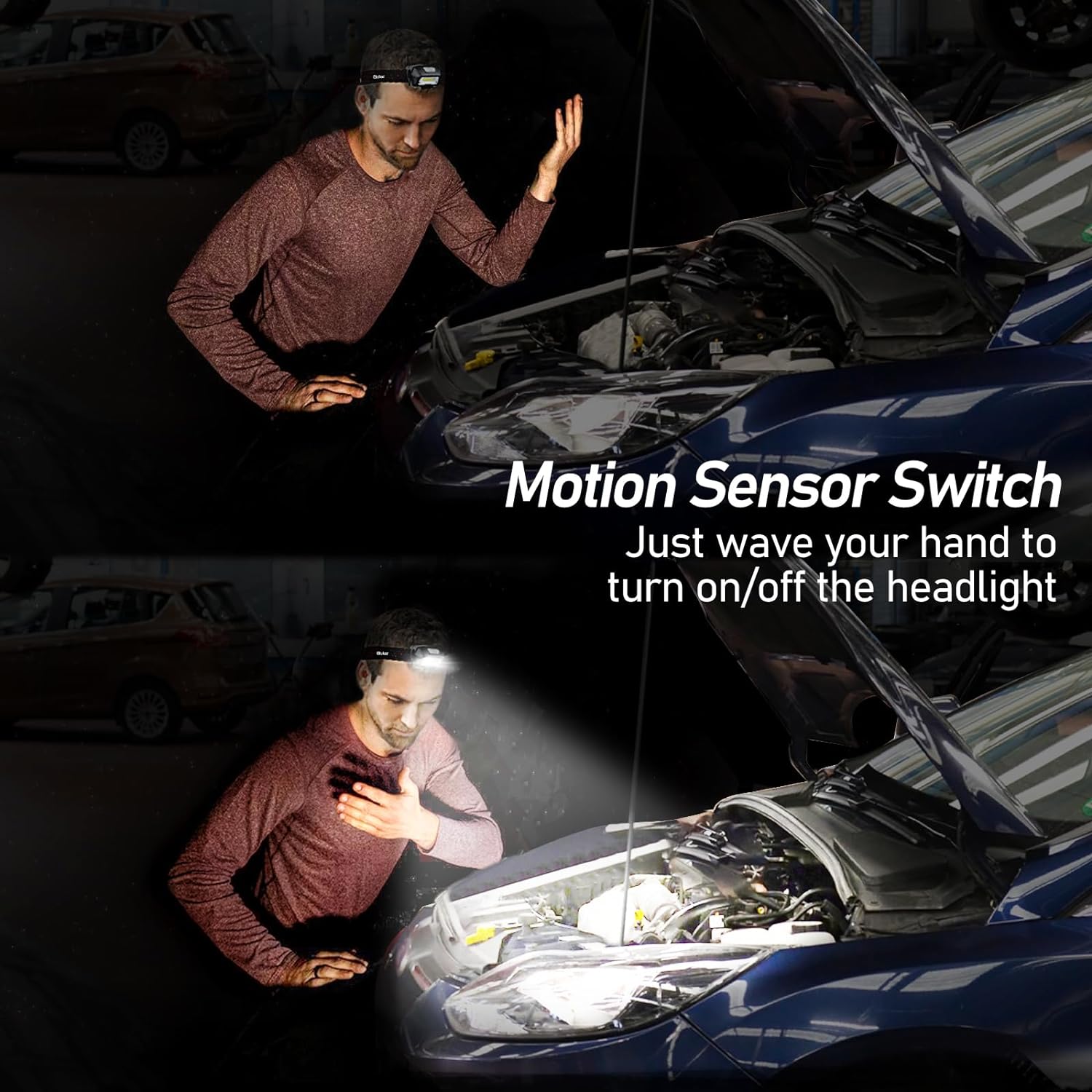 6 modes d'éclairage et libérez vos mains : 4 modes d'éclairage conventionnels : blanc fort / blanc faible / rouge fort / rouge stroboscopique. 2 modes d'induction : blanc fort / rouge fort. Grâce à la conception du capteur de mouvement intégré, libérez facilement vos mains dans ce mode, passez simplement votre main devant le phare pour l'allumer/l'éteindre.