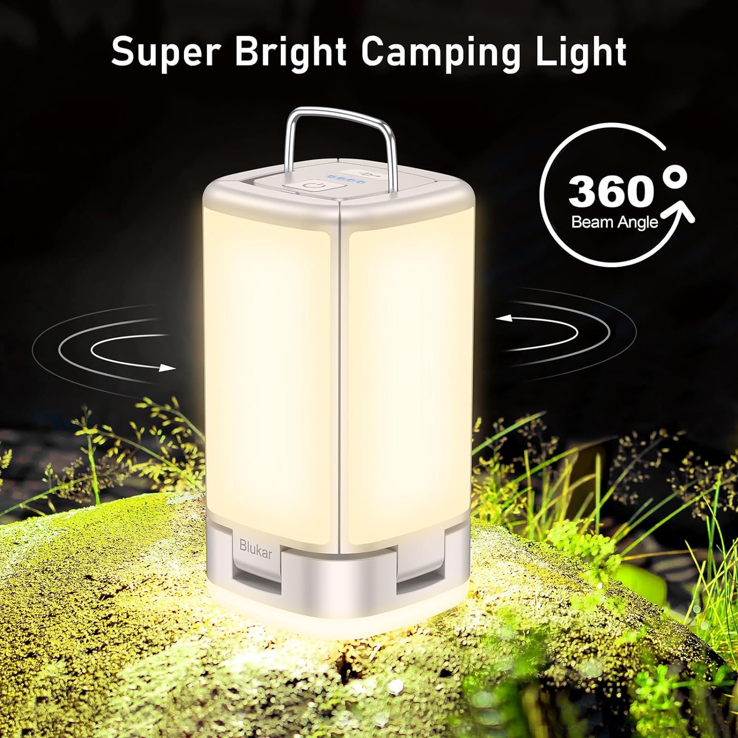 【Strong Brightness Camping Lantern】Blukar camping lantern uses 116 high-quality LED beads, the light source is stable and glare-free. The 360° beam angle provides you with bright and soft light, emitting uniform and bright 3000K warm white light, which can light up your tent or room in the dark.